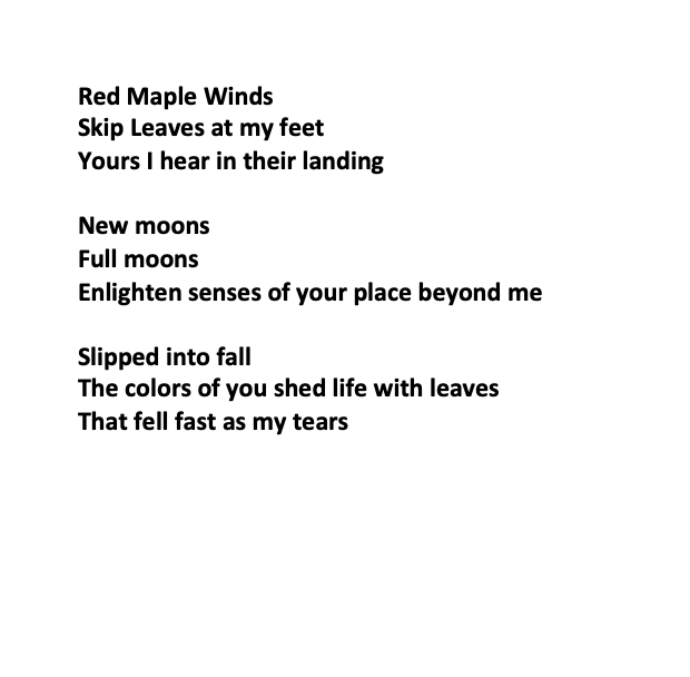 Joy always stands beneath your tree, the second we arrive at your special place in the park. There, she rolls in the grass each time with such glee, Part of you is part of her. I just know it.