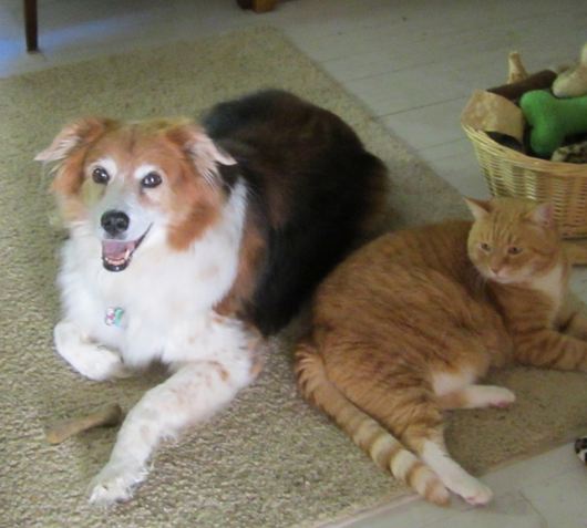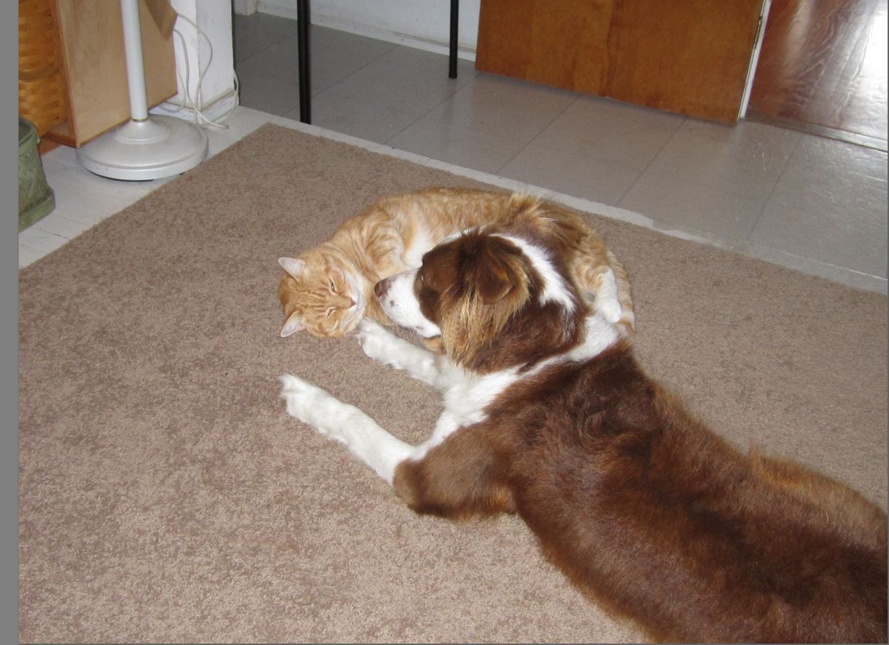 I came across this picture of Safari and you and it’s one of the few pics I have of the two of you sitting very close. When you did, it was so sweet and I find that Safari really had missed your company, as he likes to sit close to Joy when she is not acting like a wild Border Collie! Because you were a senior dog and Safari, a senior cat, I think Safari finds this new experience a lot different with  baby Joy. She totally keeps him on his toes and I think that is a good thing, considering he likes to simply chill. The only time he runs around is when he should be sleeping at 4am, waking everyone up! The funny difference is that you did not care if he was up running around. Joy, on the other hand, says, What? Why is he up? I think I will herd him back to sleep! She is like you in the fact that she is very sensitive to noise and she is VERY protective over us.